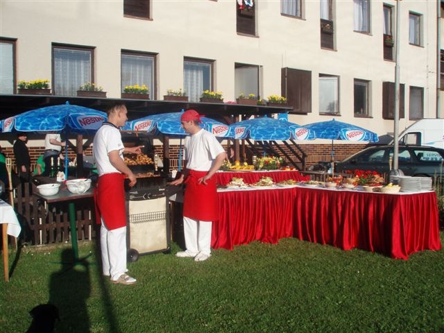 Hosté mohou využít hotelovou terasu ke grill-párty nebo po dohodě s vedením k rožnění selat a vepřových kýt.