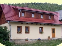 Přízemní pokoj je trochu odlišný. Dominují mu krbová kamna s pecí, která může posloužit i jako 5-té lůžko v pokoji. Zbylá lůžka tvoří praktická rozkládací postel a rozkládací sedací válenda. Nechybí stůl se židlemi a skříňka na osobní věci. Pokoj má vybavenou rohovou kuchyňskou linku s dřezem, el.vařičem, ledničkou i varnou konvicí. Samozřejmostí je samostatná velká koupelna s toaletou, umyvadlem a sprchovým koutem.