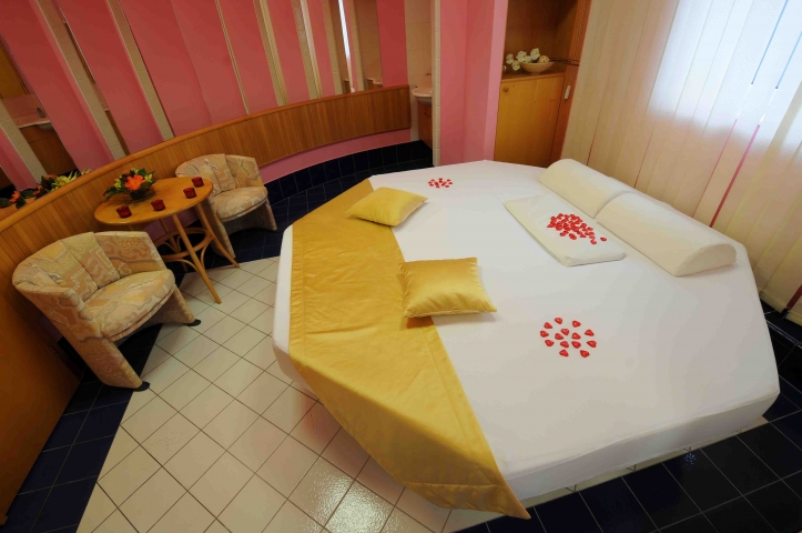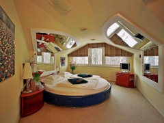 relaxační centrum s privátní finskou saunou, whirlpool a vodní postelí, které lze využít také jako pokoj.