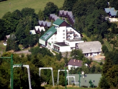 Objekt tvoří dominantu ski-areálu a je po částečné modernizaci pokojů, sociálního zařízení a po výměně oken. Pokoje jsou 4 lůžkové, standardně vybavené (stůl, židle, šatník, zrcadlo, věšák), postele jsou vesměs patrové, sociální zařízení společné na chodbě po rekonstrukci. Pro náročnější klientelu nebo pro pedagogický doprovod jsou k dispozici 4 lůžkové apartmány (válendy, předsíňka, TV, SAT, internet, vlastní soc. zařízení). Chatky jsou 4 lůžkové, patrové postele, skříň, židle, sociální zařízení po rekonstrukci v budově.