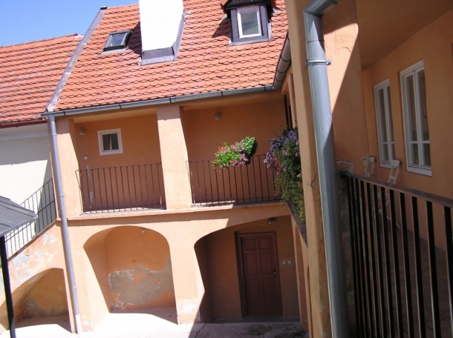 Oranžový - 50.m 2, pro 4 osoby (možnost 1 přistýlky), interiér laděný do oranžové barvy, v 1.patře s výhledem do vnitřního dvora.