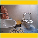 Ubytování: všetky izby sú umiestnené na poschodí, kde je k dispozícii pre všetkých hostí samostatná miestnosť s vírivou vaňou, umývadlom a WC.