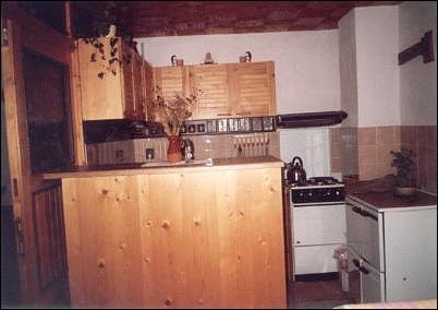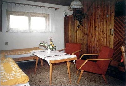 Chladnička, mikrovlná trouba, varná konvice, plynový sporák, televizor, rádio, teplá voda.Samostatný vchod do 1 apartmánu chodba, kuchyň a čtyřlůžkový pokoj s krbem. Koupelna, WC.Samostatný vchod do 2 apartmánu.Na přízemí společenská místnost, kuchyň.Podkroví čtyřlůžkový pokoj, dvoulůžkový pokoj, šatník, koupelna a WC.