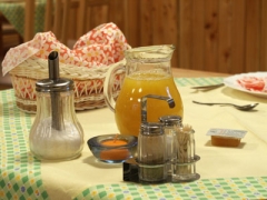 Pokoje jsou podkrovní, jeden pokoj je v přízemí. Každý pokoj má vlastní sociální zařízení, kuchyňský kout vybavený nádobím, vařičem, ledničkou a rychlovarnou konvicí. Na pokoji je možnost vaření i stolování. Na každém pokoji je TV-SAT, rádiobudík, telefon, internetová přípojka. Hostům je k dispozici společenská místnost, altánek s možností grilování, sauna, místnost na odkládání kol, stůl na stolní tenis, sportovní nářadí, společenské hry. Podáváme snídaně formou bufetového stolu. Parkování je zdarma v uzavřeném dvoře.