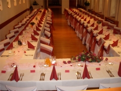 VEĽKÁ SÁLA (150 osôb) - je viacúčelová spolčenská miestnosť, plne klimatizovaná, s možnosťou rozdelenia na dve sekcie. Je vhodná na usporiadanie kongresov, seminárov, prezentácií, svadieb či recepcií. Jej súčasťou je i zastrešená terasa.