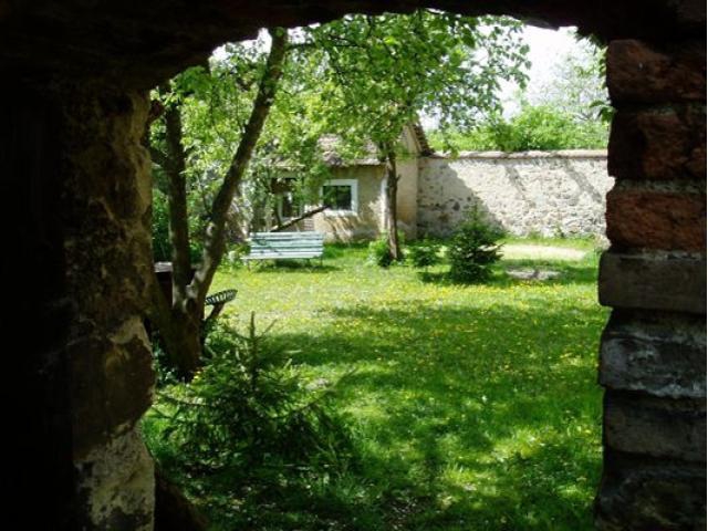 Velký sad je za stodolou. Ze dvora lze vrátky ve zdi projít na uzavřenou malebnou zahrádku cca 14x10 m s dominantním čedičovým krbem s ohništěm pro rožnění/grilování /80x110 cm/.