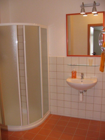 Koupelna se sprchovým koutem, WC a umyvadlem