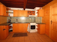 - na prízemí sa nachádza štýlovo zariadená spoločenská miestnosť s krbom, TV, CD prehrávačom. Kuchyňa je plne vybavená - ( priestranná kuch. linka, chladnička, elektrický šporák, kuch. potreby). WC a kúpelňa sú priestranné a od seba oddelené, v kúpelni je k dispozícii sprchovací kút.