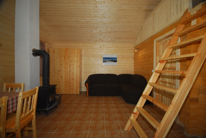 Na prízemí sú 2 lôžka v spálni na manželskej posteli a 2 lôžka v obývacej izbe na sedacej súprave.V podkrovnej časti sú 4 lôžka. Z obývacej izby sa dá vyjsť na prestrešenú terasu so záhradným nábytkom.