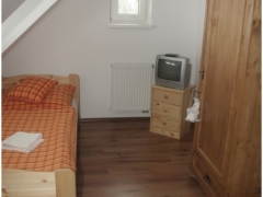 V podkroví jsou další 3 pokoje a navíc jeden apartmán (byt 2+1). Pokoje jsou vždy laděny do jedné barvy (červený pokoj, bílý pokoj...), vyspíte se u nás v pravém staročeském kanafasu. Všechny pokoje mají vlastní sociální zařízení, TV, některé i kuchyňku.