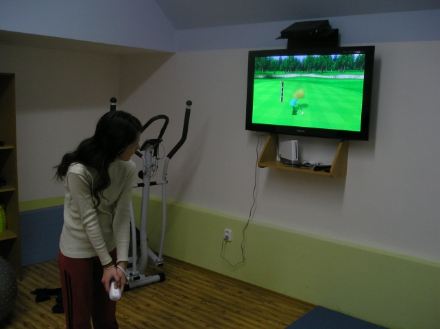 TĚLOCVIČNA-HERNA je k dispozici ZDARMA a hosté ji mohou využívat kdykoli chtějí. Kromě stolního tenisu a eliptického trenažeru je zde ViiFit - videoherní systém prostřednictvím kterého si můžete zahrát tenis, golf, baseball, box či bowling.