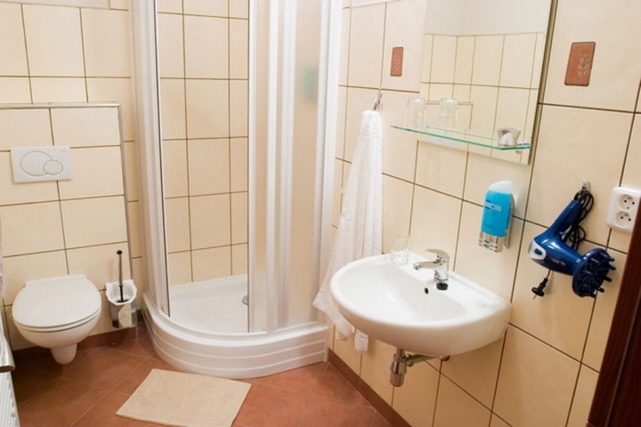 S pěkným vybavením, LCD TV, trezorem, telefonem, internetem a koupelnou se sprchovým koutem a WC.
