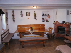 V přízemí sklepu se nachází vstupní vestibul s posezením pro cca 20 osob s krbem a WC. Tento prostor je možné použít i pro úschovnu kol nebo prostory pod penzionem, které jsou pro tyto účely vyhrazeny. V podkroví sklepu je kompletně vybavená kuchyně, barový stůl, sprchový kout a ložnice (6x lůžko popř. i možnost přistýlky, digi TV a skříň).