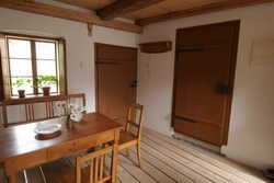 Secesními postelemi vybavený pokoj, kdysi dříve byl kuchyní s modrými kachlovými kamny, která byla součástí letního bytu. Už před 60 lety k nám na mlýn jezdili letní hosté. Nebudete věřit, předloni paní a pán již v letech se přišli podívat, kde jako děti byli s rodiči na letním bytě, tehdy se ještě neříkalo na dovolené. A vzpomínali, jak pro ně hospodář přijel s bryčkou na nádraží do Oder.Bydlení se dvěma postelemi, koupelnou a malou, ale kompletně vybavenou kuchyní.