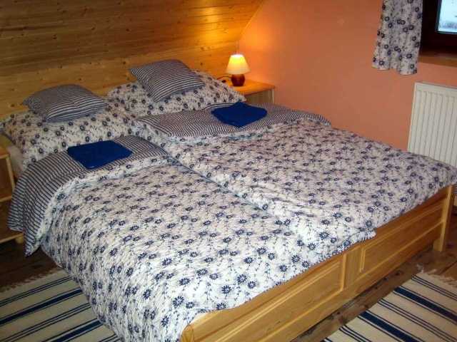 Apartmán č. 1 - chodba, společenská místnost, kuchyně, koupelna se sprchovým koutem a WC, v podkroví dvě ložnice 2x2 lůžka, možnost přistýlky, dětská postýlka k dispozici. Kuchyně je kompletně vybavena elektrospotřebiči a potřebným nádobím.