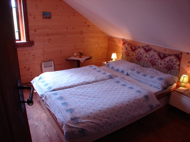 2.podlažie : 1 spálňa s manželskou posteľou + 1 izba s dvoma samostnatnými lôžkami
