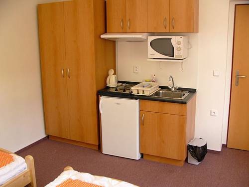 Každé apartmá má vlastní sociální zařízení: WC, sprchový kout a kuchyňský kout: varná dvouplotna, mikrovlnná trouba, chladnička, varná konvice a nádobí. Celý objekt je vytápěn elektrickými přímotopy – na pokojích s možností vlastní regulace. Podlahy pokojů a chodeb pokrývá zátěžový koberec.